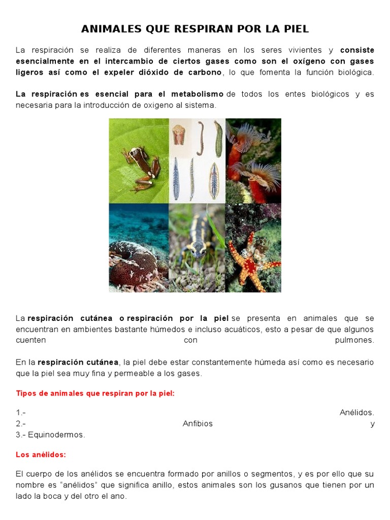 Como hemos explicado, la respiración por la piel es propia de algunos equinodermos, anfibios y anélidos. Animales que respiran por la piel para colorear : Mil ejemplos > animales > animales que respiran por la piel. Los gatitos que juegan en el cálido jardín de primavera, los mapaches celebran la cosecha de otoño, fantásticas luces que iluminan la iglesia en invierno. El oxígeno es captado por la piel, absorbido por los vasos sanguíneos y llevado a todos los órganos del cuerpo.
